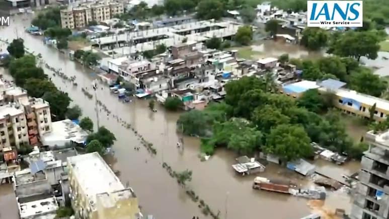 वडोदरा शहर के कई इलाके बाढ़ के पानी से जलमग्न हैं.
