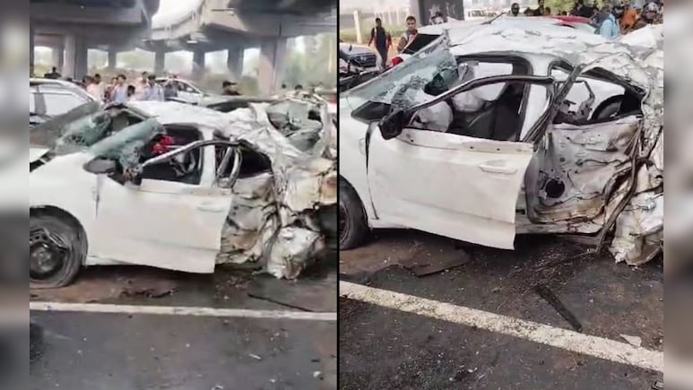 गुरुग्राम-सोहना हाइवे पर पिलर से टकराकर हुआ कार का भीषण एक्सीडेंट, 2 लोगों की मौत 3 घायल