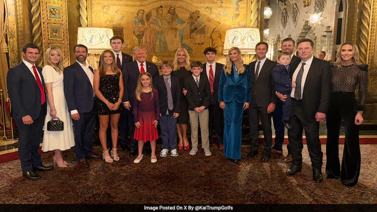 डोनाल्ड ट्रंप के परिवार के साथ टेस्ला के सीईओ एलोन मस्क गोद में अपने बेटे को लिए हुए दिखाई दे रहे हैें.