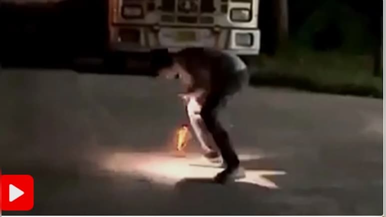 सोशल मीडिया पर आए दिन कोई न कोई वीडियो वायरल होता ही रहता है. कुछ वीडियो ऐसे होते हैं,जिन्हें देखने के बाद हम पूरी तरह से दंग हो जाते हैं,वहीं कुछ वीडियो ऐसे होते हैं,जो हमें हैरान कर देते हैं. अभी हाल ही में सोशल मीडिया पर एक वीडियो वायरल हो रहा है. यह वीडियो कर्नाटक के हसन जिले का बताया जा रहा है. इस वीडियो में देखा जा सकता है कि तीन छात्र अपनी जान की परवाह किए बगैर पेट्रोल से भरे थैले में पटाखा छोड़ते हैं. सबसे हैरानी वाली बात ये है कि ये छात्र फ्लूय टैंकर के सामने ऐसा कारनाम करते हैं. सोशल मीडिया पर यह वीडियो काफी हैरान कर रहा है.