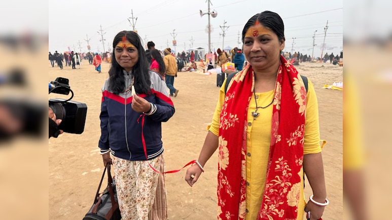 प्रयागराज में महाकुंभ के मौके पर भक्तों का सैलाब उमड़ रहा है. दूर-दूर से लोग यहां आस्था की डूबकी लगाने के लिए आ रहे हैं. मेला क्षेत्र में अलग-अलग रंग देखने को मिल रह हैं. मेले में आई दो महिलाओं ने सबका ध्यान खूब आकर्षित किया. दरअसलमहाकुंभ आई इन दोनों महिलाओं को डर था कि वो खो न जाएं. ऐसे में इन्होंने एक गजब तरकीब लगाई. इन दोनों महिलाओं ने एकरिबन लिया और उसे अपनी-अपनी कलाई में बांध लिया. इसके बाद ये दोनों बिना किसी डर के मेले में घूमती हुई नजर आईं.