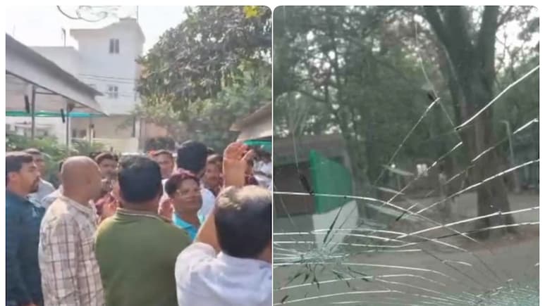 'गाड़ी के बोनट पर चढ़े प्रदर्शनकारी,शीटे पर फेंका पत्थर'